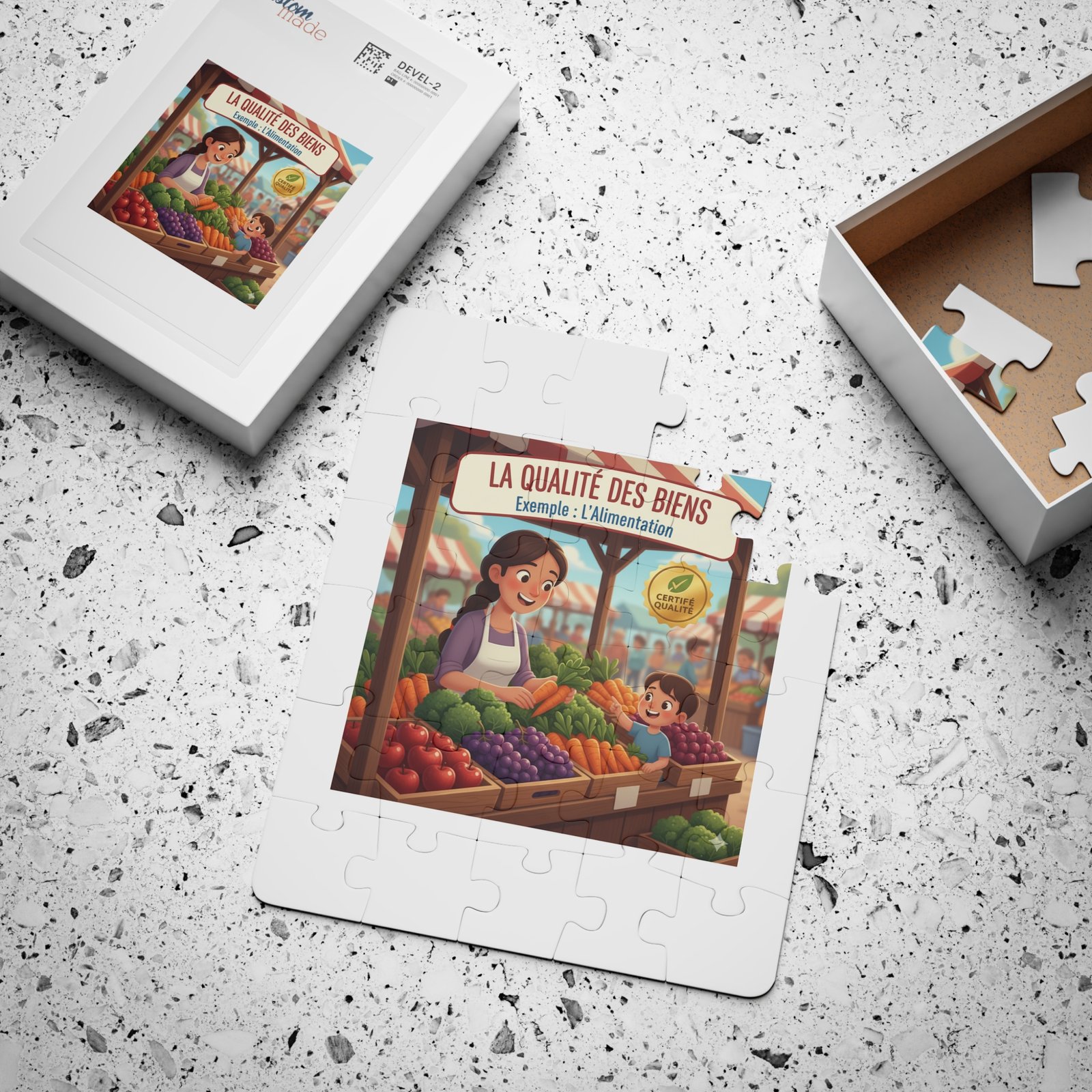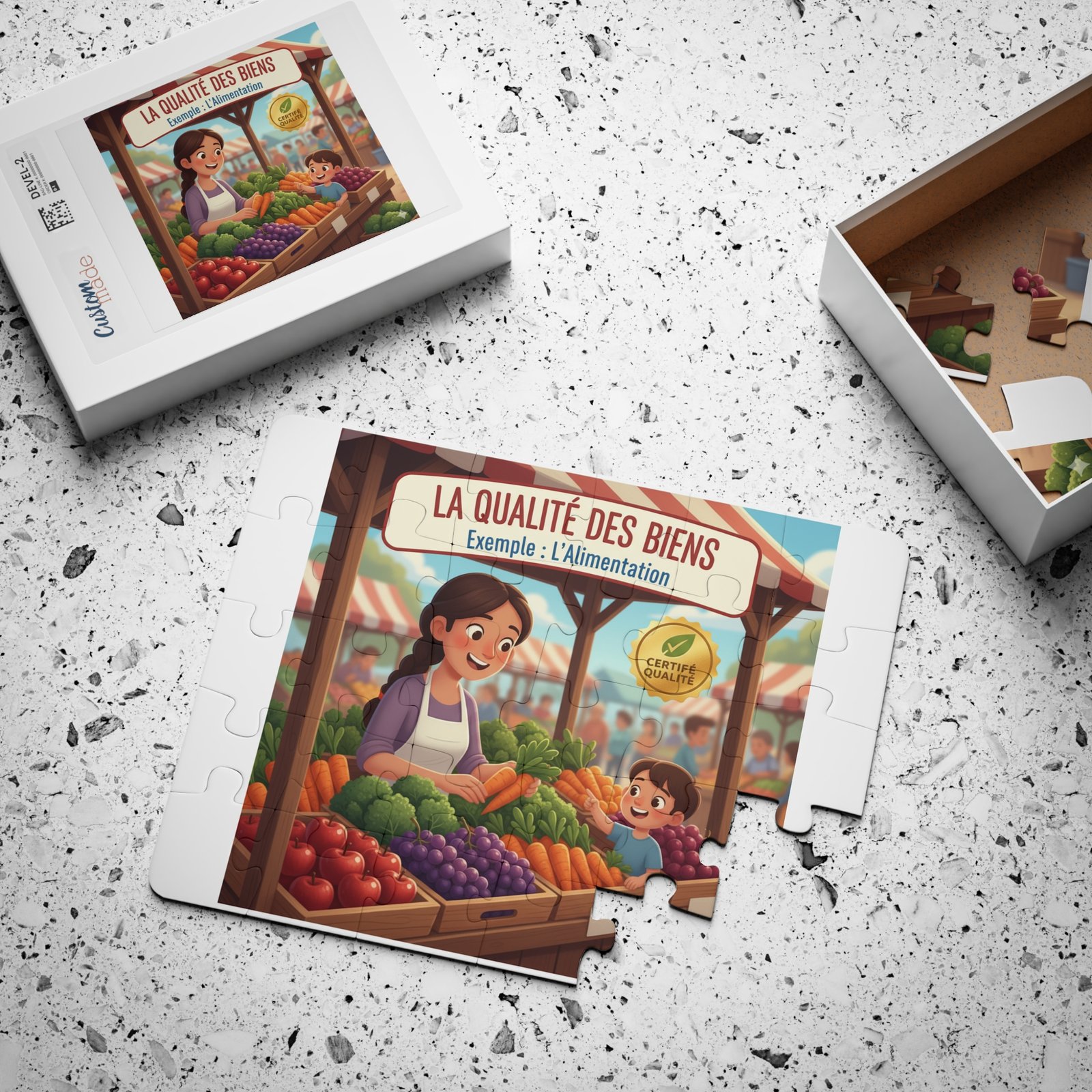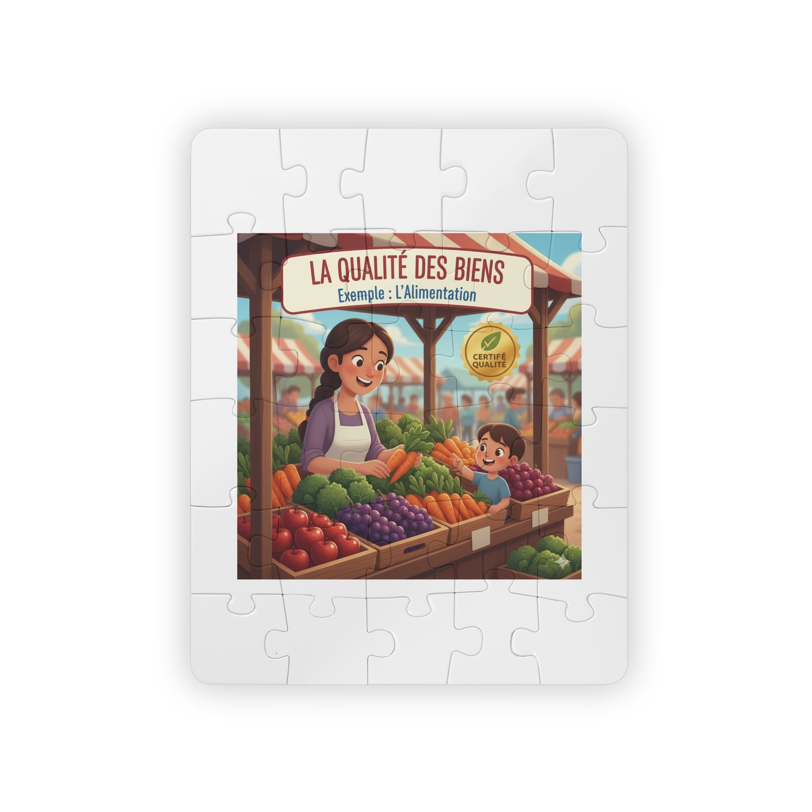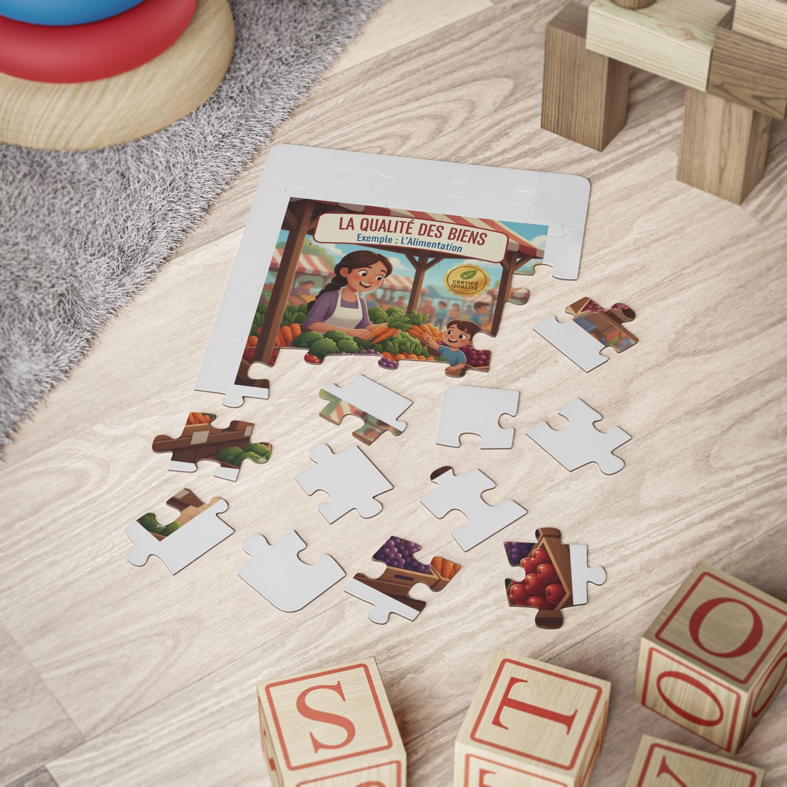 Kids’ 30‑Piece Puzzle — French Market Scene “La Qualité des Biens” (Educational, Food & Market Theme)