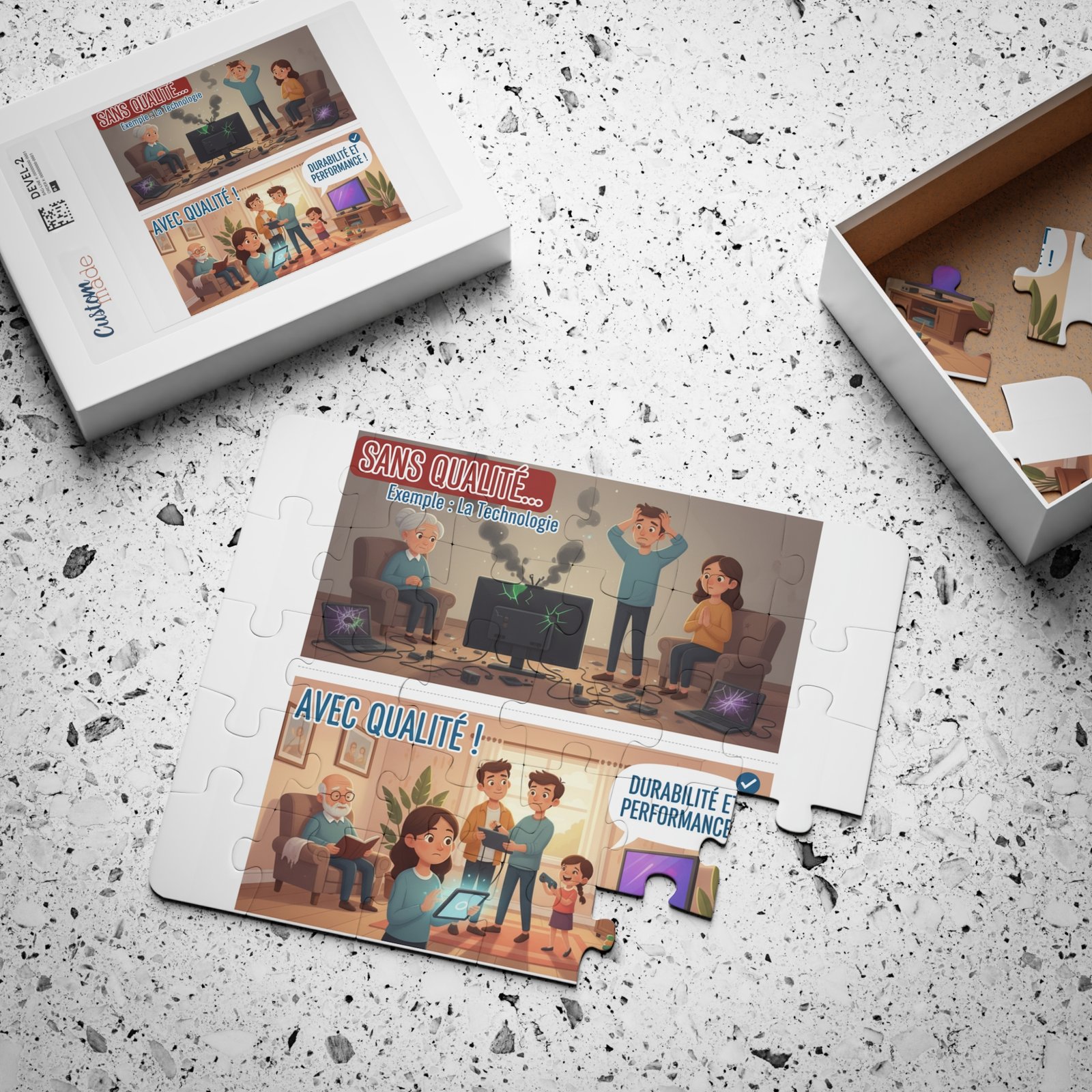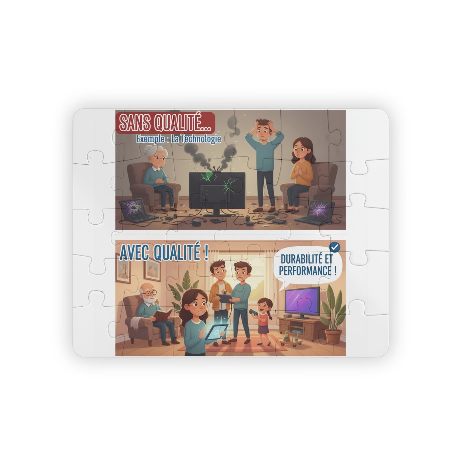 Kids’ Puzzle – 30-Piece Family Tech Habits Puzzle (French Text: “Sans Qualité… Avec Qualité!”, Durable)