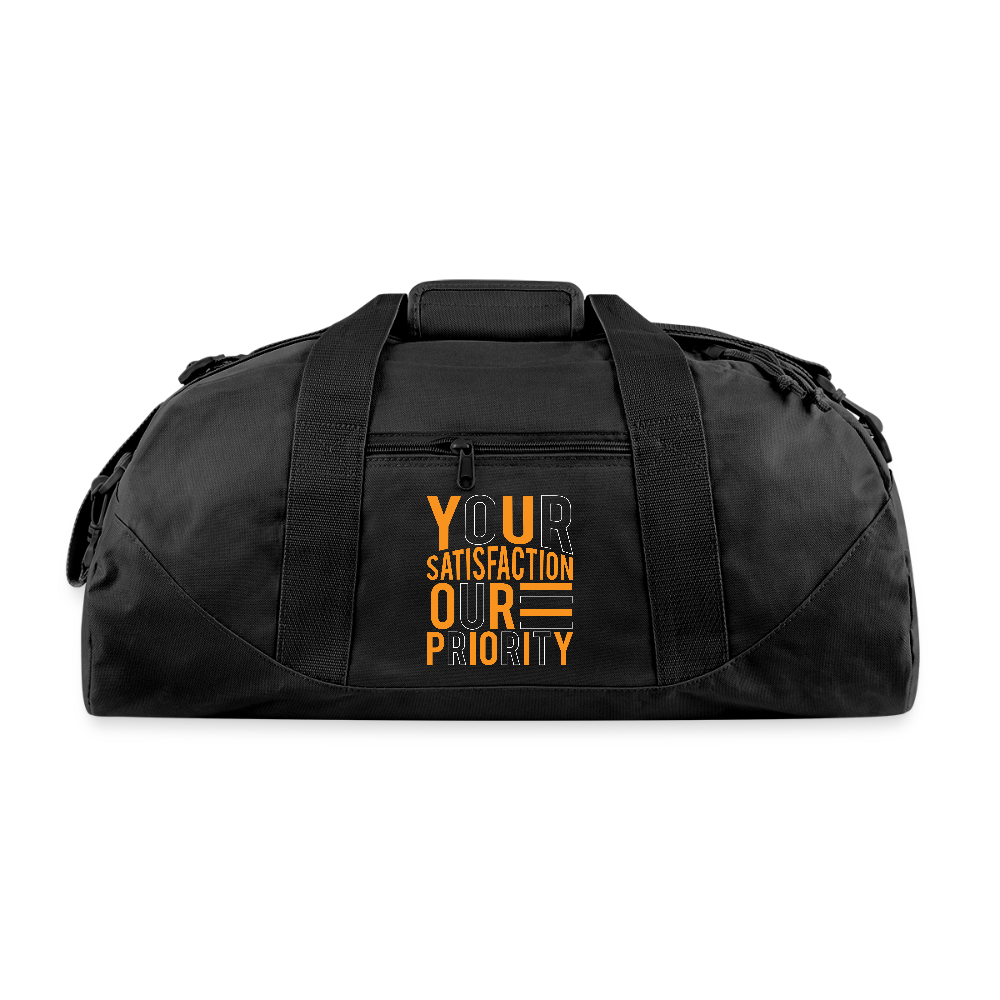 This large, square-shaped duffle bag from recycled polyester is perfect for travel, a trip to the gym, or as a home for your sports equipment. Complete with shoulder strap and reinforced bottom, this bag is built to last.